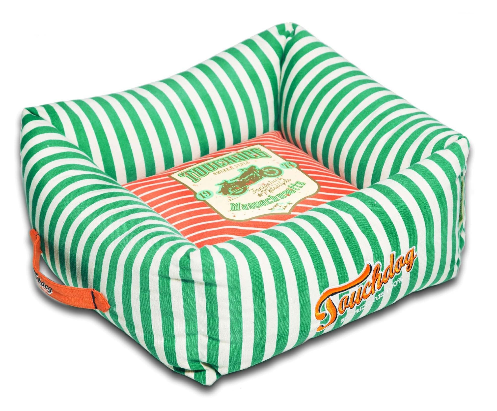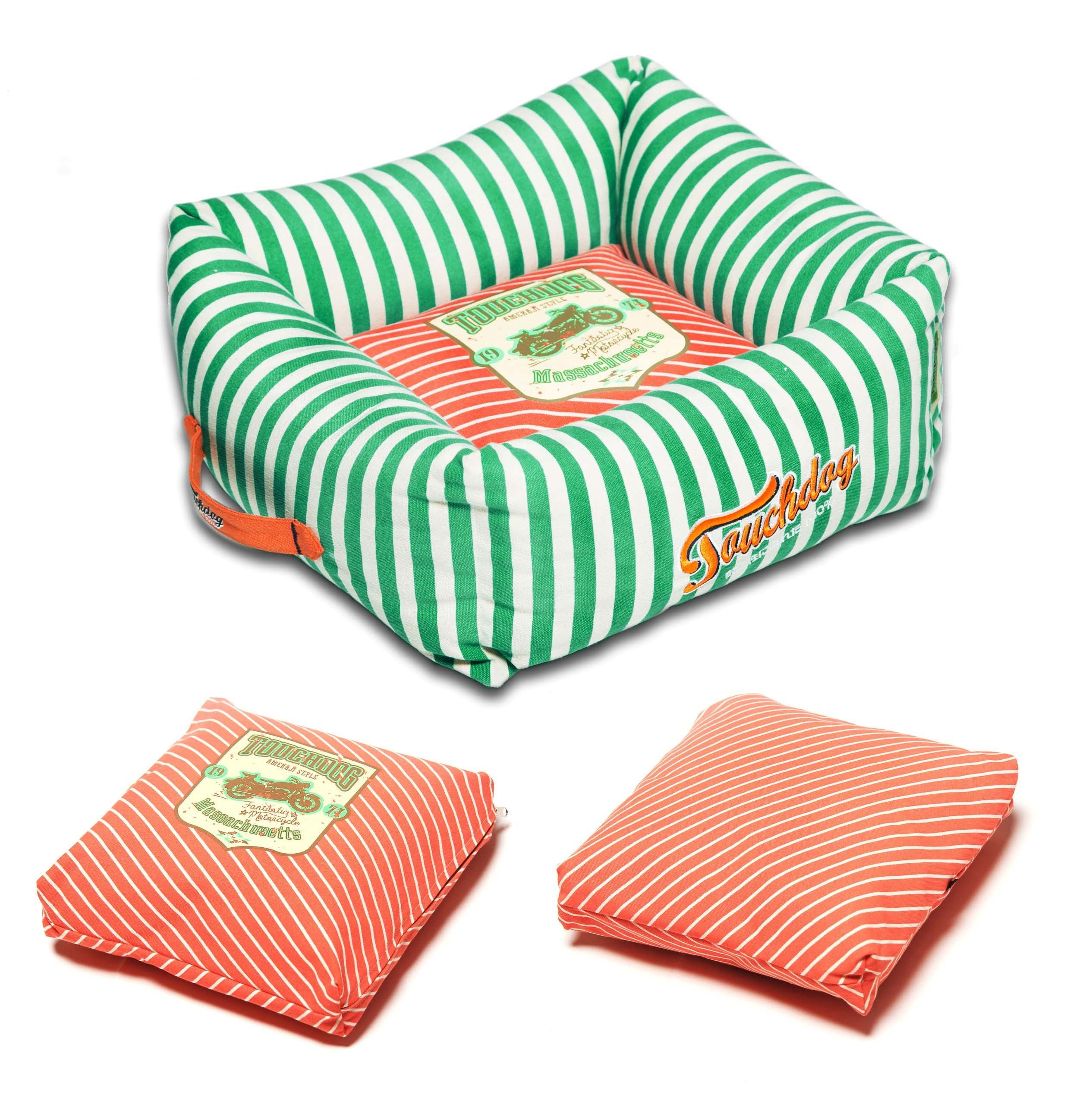 The Touchdog Neutral-Striped Ultra-Plush Easy Wash Squared Designer Dog Bed is composed of a Cotton-Polyester Outer shell with a Reversible and Removable Polyester-Cotton inner dog cushion. The cushion has the ability to zip open for machine wash placement of the inner polyfill contents, The inner cushion Features a fashion striped design pattern on the outside with a beautiful print design on the cushion with the Touchdog Embroidered stamp of perfection on the frontal lip. Composed of a Higher-Grade level of Poly-Fill for superior plush. Features a Nylon side handle for ease of mobility when carrying. Touchdog, the leading Premium Pet Brand of Tomorrow. Available in Multiple Colors.